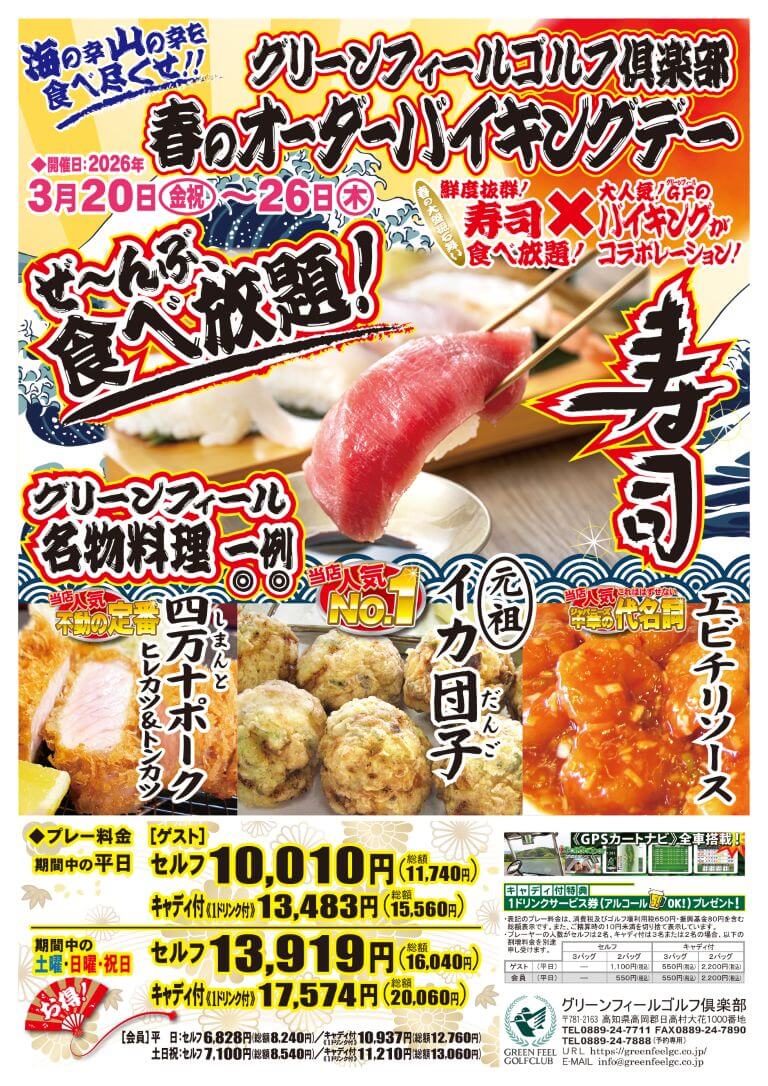- ※表記のプレー料金はセルフは4バッグまたは3バッグ、キャディ付は4バッグの料金です。 通常料金はこちら【ご利用案内】へ