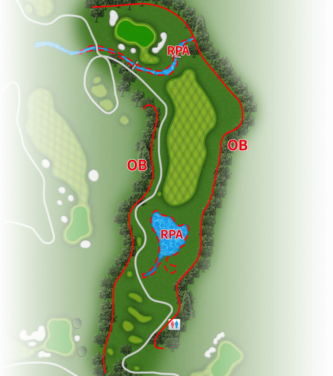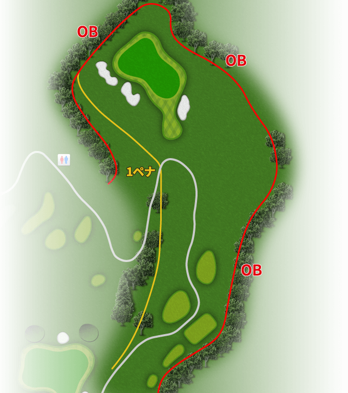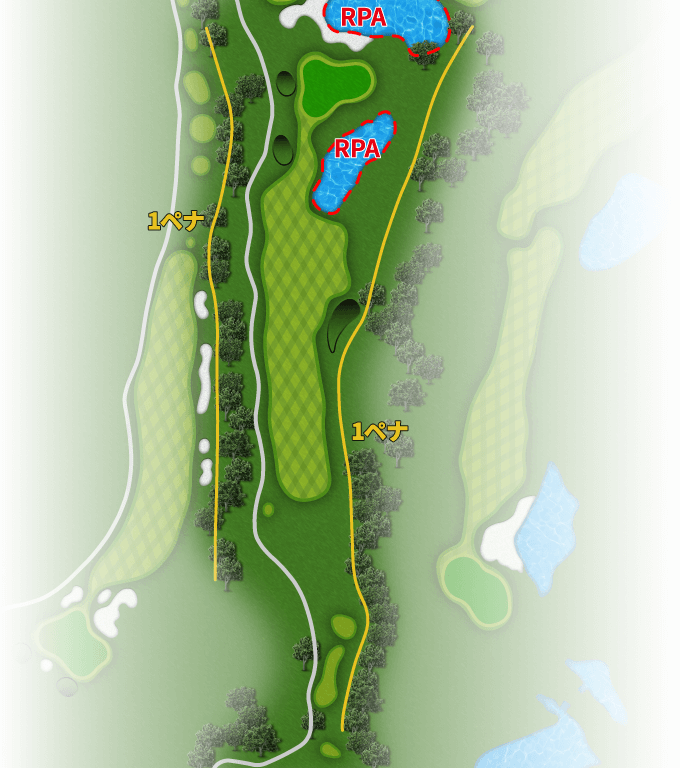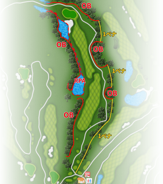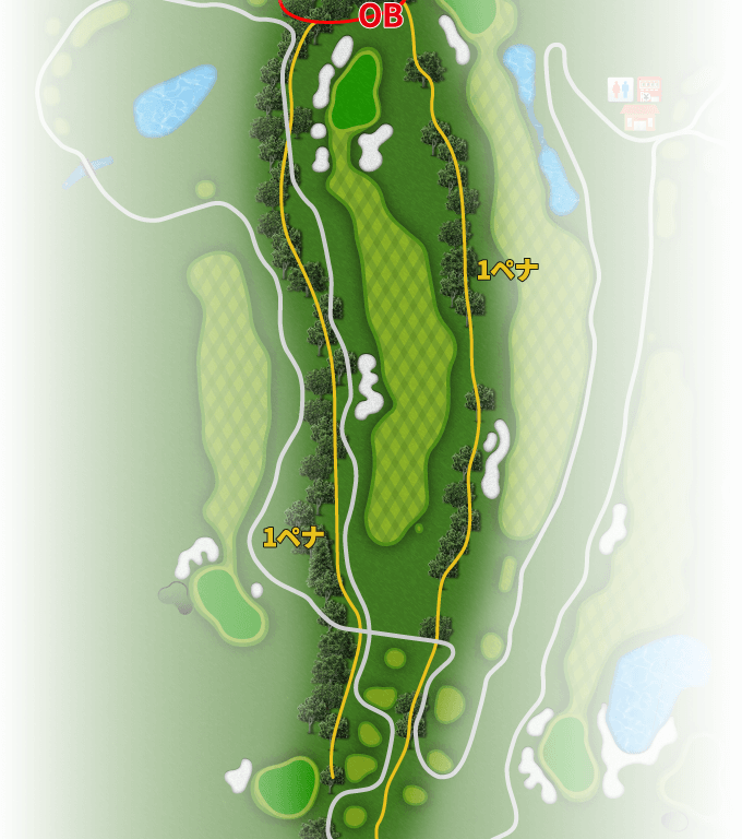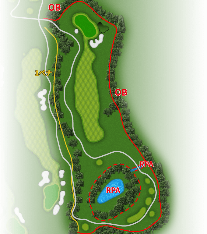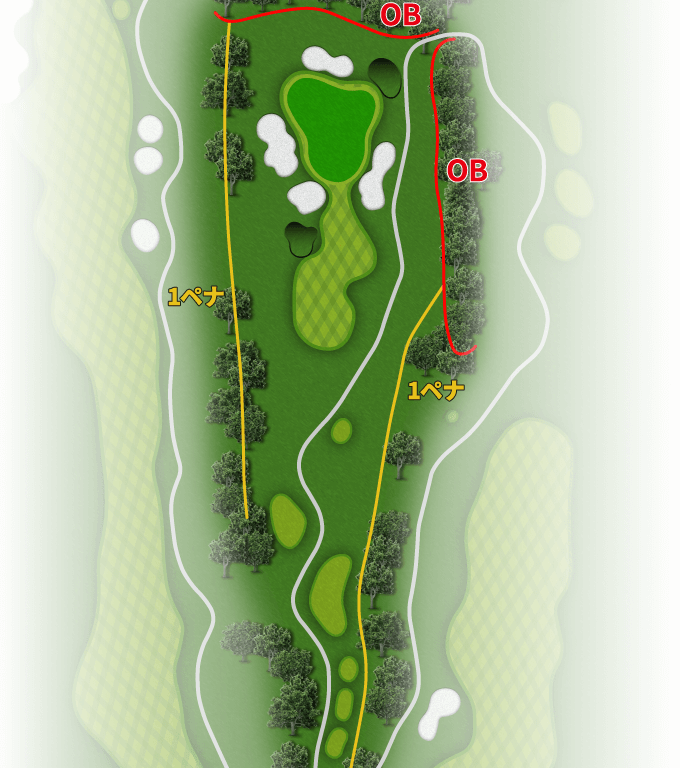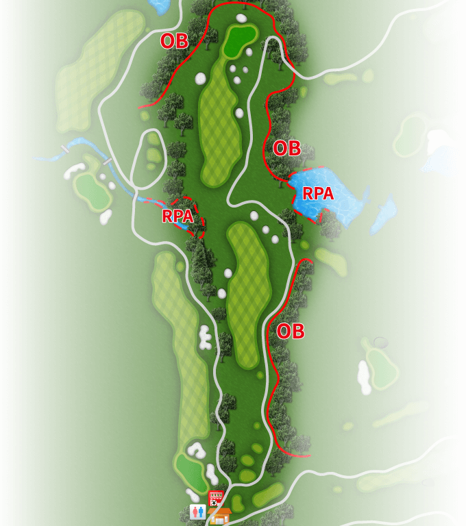 丘陵コースである当コースはいつでもトーナメントを開催できることを念頭におきチャンピオンティからの難度は高く、レギュラーからは一般アマチュアが楽しめるように設計されています。多くの自然を残しているので全般的に戦略性豊かなホールになっており、ただ飛ばすだけでなくポイントを決めてプレーすることが要求されます。アウトコースは4番のドウダンツツジの群生を残すなどブッシュ絡みのホール。 インコースは池やクリーク絡みのホールが多くなっており、これらのハザードを如何にして克服するかがスコアメイクのカギとなります。
