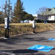 当倶楽部駐車場の入口付近に、電気自動車(EV)充電器を4台分設置いたしました。