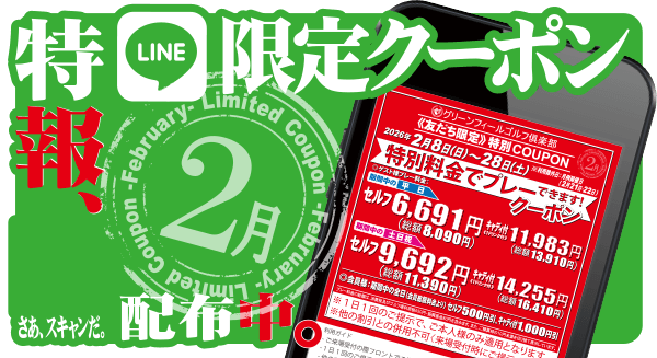 月例開催日を除く2月8日から28日に、驚異の特別料金で何度でもプレーいただける《LINE友だち限定》特別クーポンを配信しています。