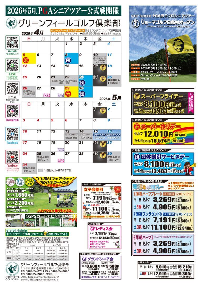 グリーンフィールの大人気プラン、通称『タダケンの日』5月の日程決定! - 2026.03.11