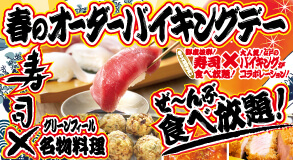 【春のオーダーバイキングデー】職人厳選、鮮度抜群寿司食べ放題!当倶楽部名物料理や旬の味覚もオーダー形式で出来立てあつあつをお召し上がりください!
