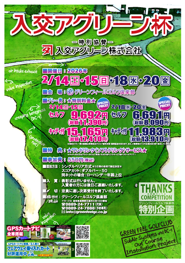 - ≪キャディ付特典≫1ドリンクサービス券(アルコールOK)プレゼント!(※上記、≪1D付≫)